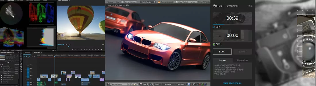 Procuramos testes de benchmarks para mostrar vários cenários bem distintos, desde uso profissional como o editor de vídeo Adobe Premiere até testes em jogos.