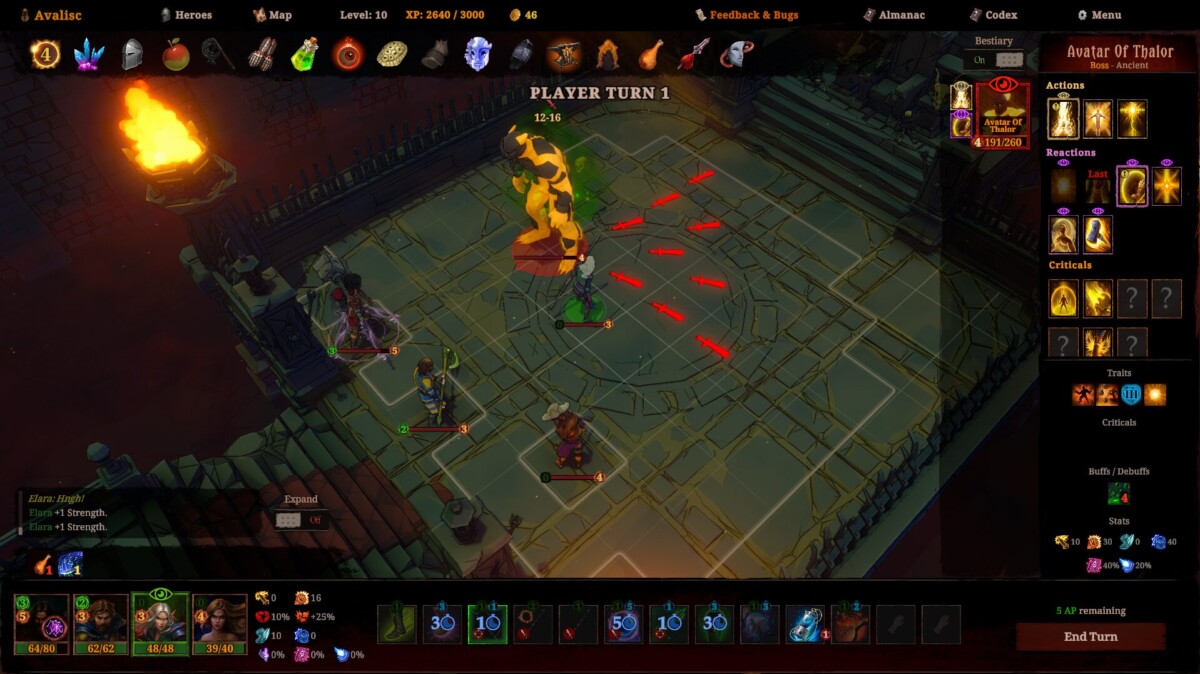 O resultado pode ser um chefe levando um hit com mais de 50 de dano quando, no geral, 20 já é um valor altíssimo para este título. E isso é tão sério que habilidades com 15 de dano podem ter cooldown de 2 turnos.