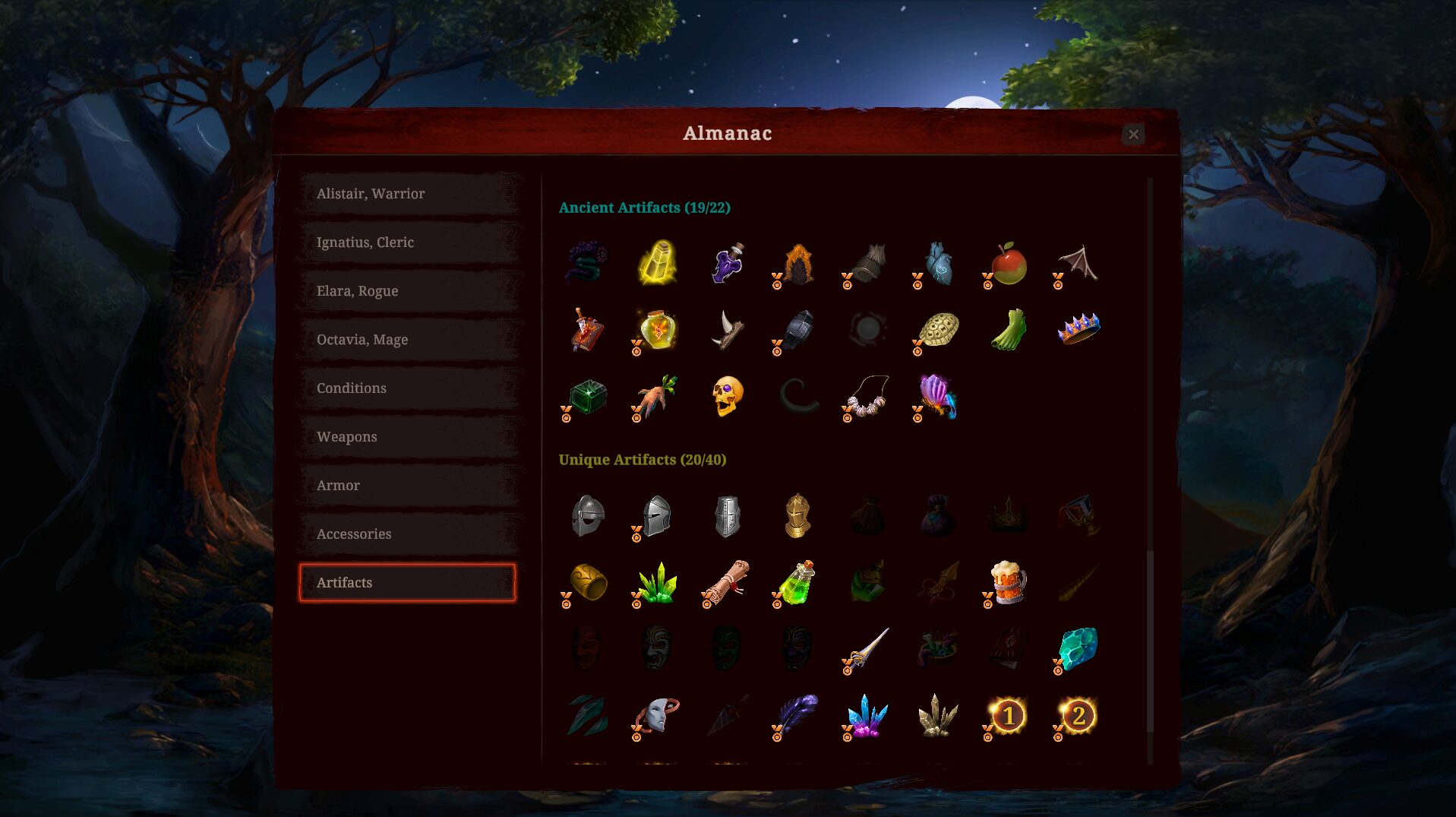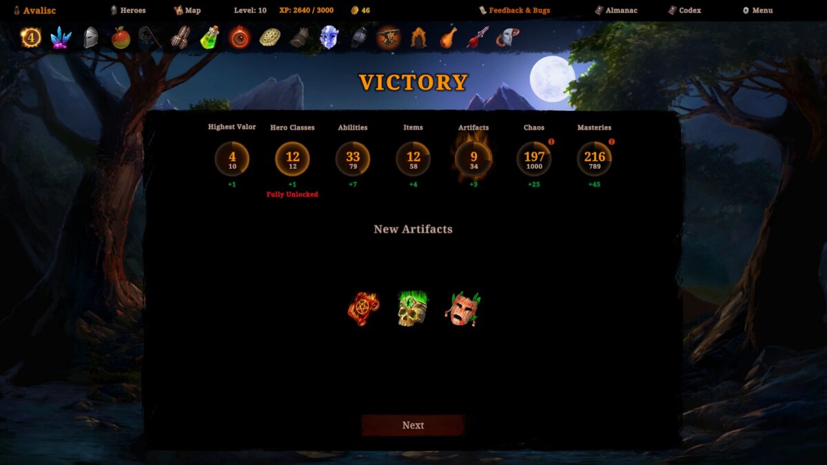 O jogador coleciona artefatos que dão bônus (e podem dar alguma penalidade) durante a partida e equipamentos que precisam ser equipados nos personagens. Isso sem falar em níveis que aumentam o poder e liberam novas habilidades.